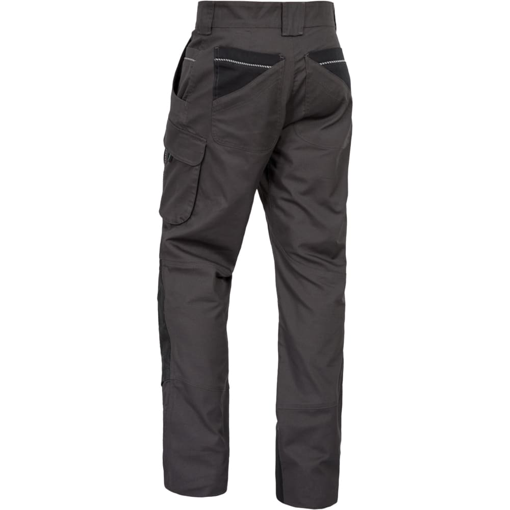 Prozračna rastezljiva tkanina, ravnog kroja s uskim nogavicama, dvostruko prošiveni šavovi, reflektirajući rubovi na džepovima za dobru vidljivost, preklopi s čičak trakama, pet širokih omči za remen, široki zatvarač s kvalitetnim patentnim zatvaračem, umetak u preponama olakšava kretanje i sprječava kidanje šavova, okomite čavliće na džepovima za štitnike za koljena sprječavaju klizanje štitnika za koljena.