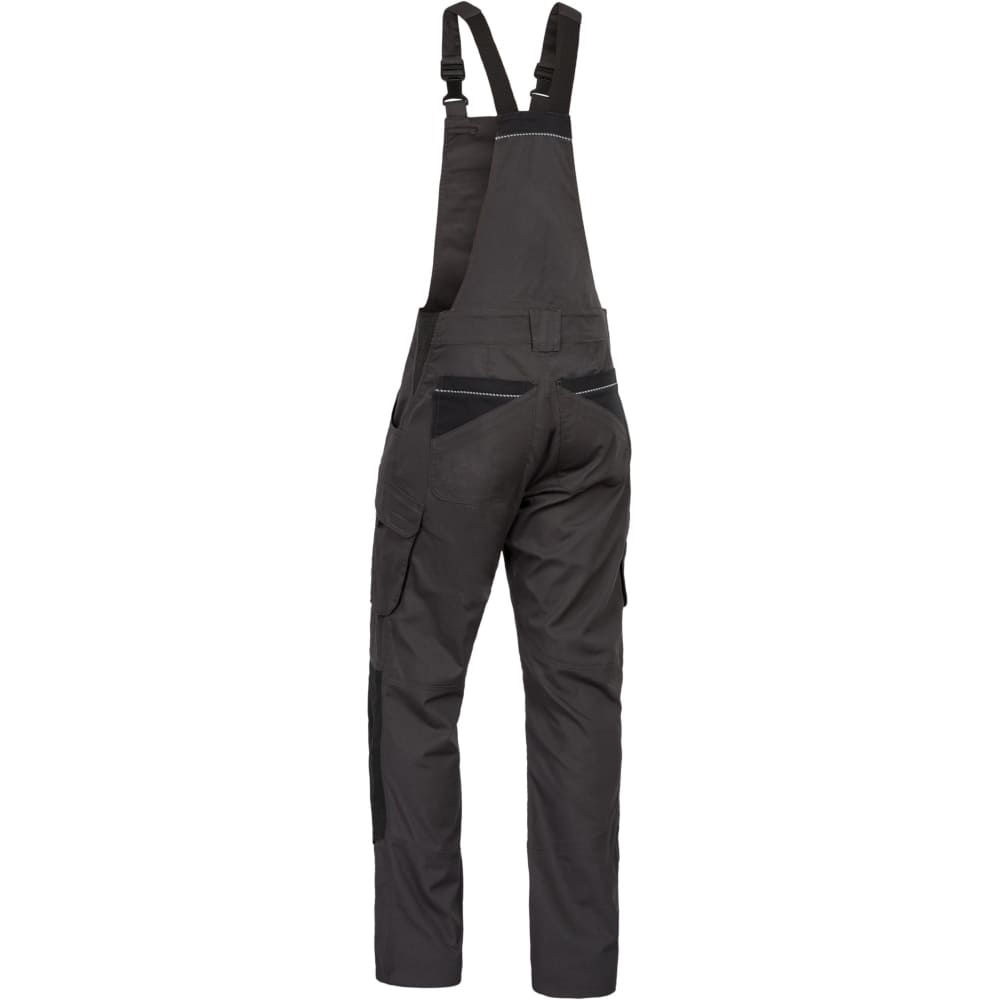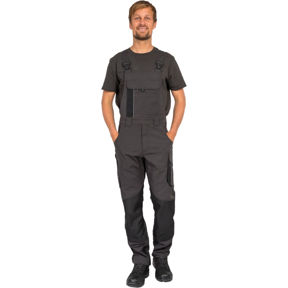 Prozračna rastezljiva tkanina, ravnog kroja s uskim nogavicama, dvostruko prošiveni šavovi, reflektirajući rubovi na džepovima za dobru vidljivost, preklopi s čičak trakama, ekstra široke naramenice s djelomičnom elastikom, ergonomski povezane naramenice straga za sprječavanje klizanja, podbradnik s unutarnjim omčama za pričvršćivanje naramenica, fleksibilan pojas zahvaljujući bočnim rastezljivim pločama, 5 širokih omči za remen, široki zatvarač s kvalitetnim patentnim zatvaračem, umetak u području međunožja olakšava kretanje i sprječava kidanje šavova, uzdužne šipke na džepovima za štitnike za koljena sprječavaju klizanje štitnika za koljena