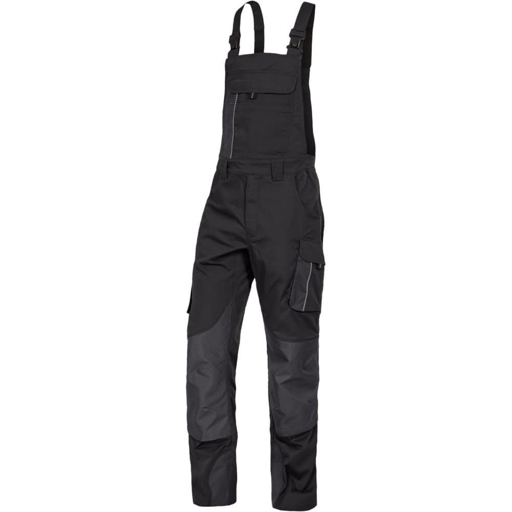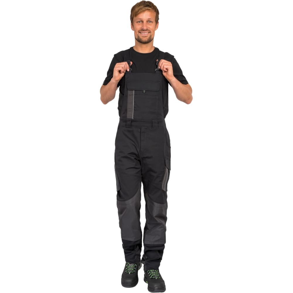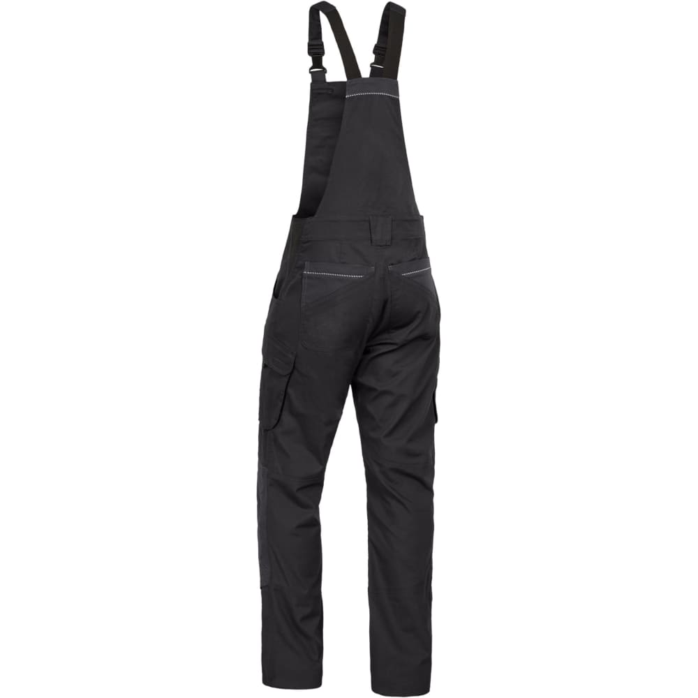 Prozračna rastezljiva tkanina, ravnog kroja s uskim nogavicama, dvostruko prošiveni šavovi, reflektirajući rubovi na džepovima za dobru vidljivost, preklopi s čičak trakama, ekstra široke naramenice s djelomičnom elastikom, ergonomski povezane naramenice straga za sprječavanje klizanja, podbradnik s unutarnjim omčama za pričvršćivanje naramenica, fleksibilan pojas zahvaljujući bočnim rastezljivim pločama, 5 širokih omči za remen, široki zatvarač s kvalitetnim patentnim zatvaračem, umetak u području međunožja olakšava kretanje i sprječava kidanje šavova, uzdužne šipke na džepovima za štitnike za koljena sprječavaju klizanje štitnika za koljena